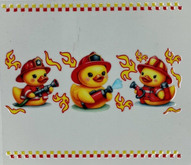 16 OZ SINGLE SIDE RUBBER DUCKY FIRE FIGHTERS UV-DTF STICKER