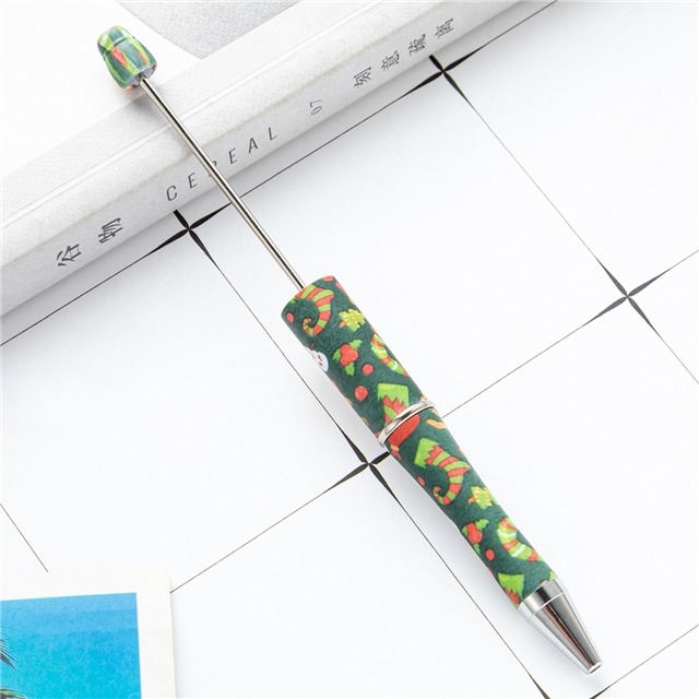 PLASTIC BEADABLE PRINTED INK PEN (CHRISTMAS PRINTS)